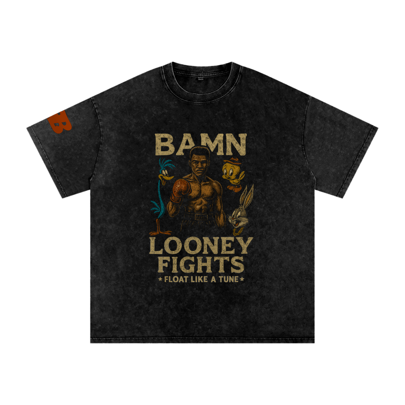 This ain’t just a tee — it’s a statement. The BAMN Knockout Tee is a raw, heavy-hitting tribute to the legend himself, Muhammad Ali — the king of the ring who dropped giants and talked his talk while doing it.Posted up front and center is a cold-blooded boxer with that same Ali energy — gold chain on, gloves laced, standing tall over another body laid out on the canvas. Surrounded by hyped-up Looney Tunes homies, the design mixes vintage cartoon flavor with hard fight-night vibes. That “BAMN” up top? It stands for By Any Means Necessary — the way Ali moved, the way real ones still move today.