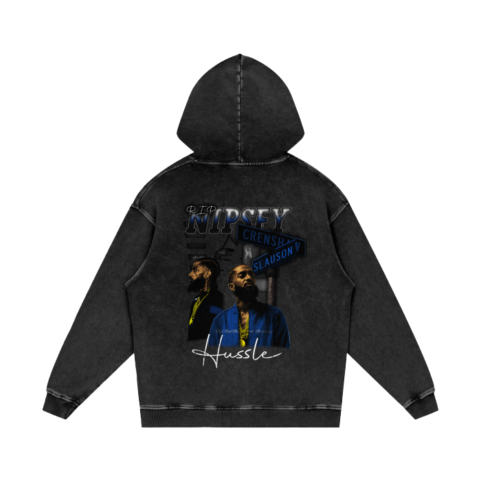 This hoodie is more than a fit — it’s a message. A memorial stitched in honor of the late, great Nipsey Hussle, straight outta Crenshaw & Slauson, immortalized in bold blue and black.