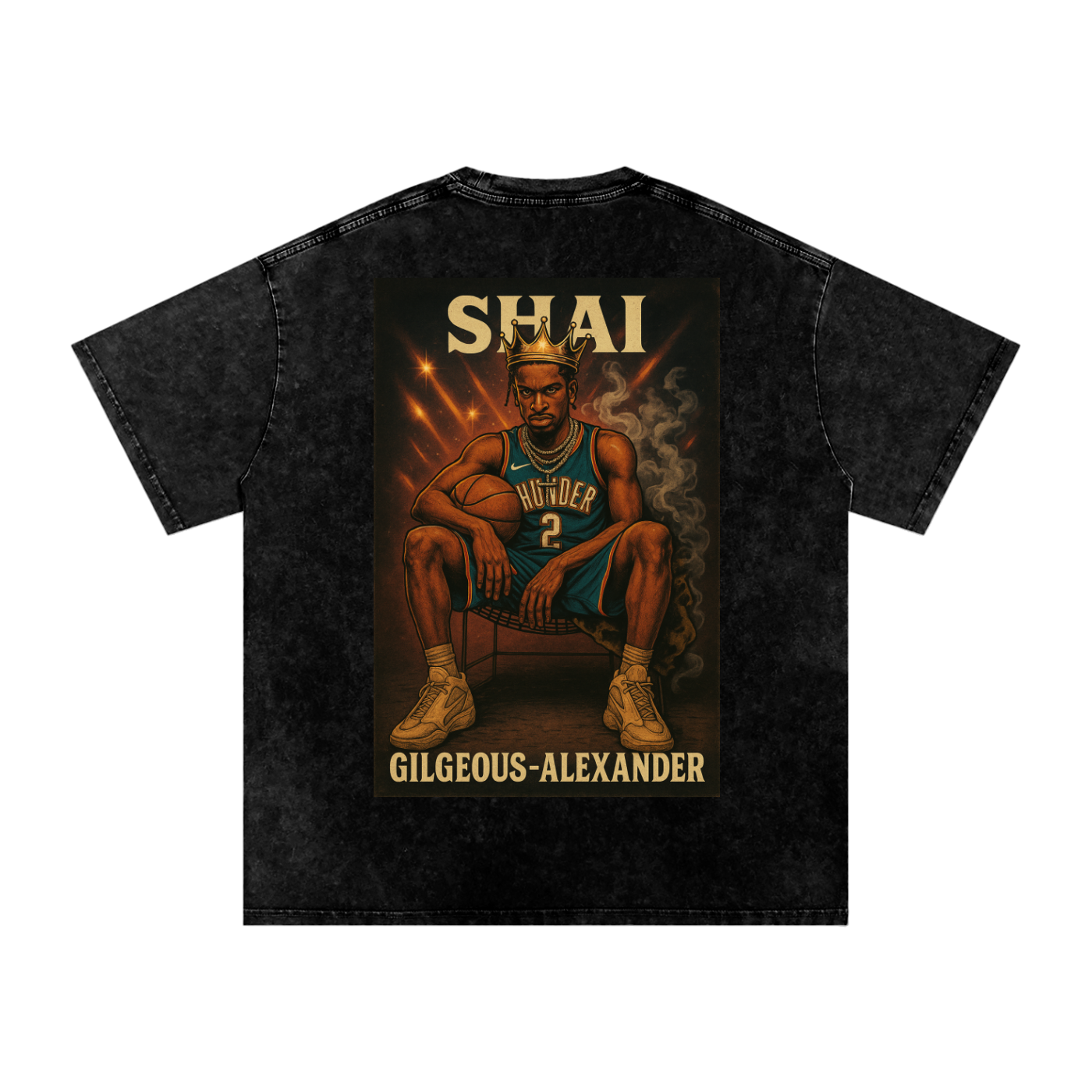 This tee is a salute to the smoothest weapon in the league’s next era — Shai Gilgeous-Alexander, the walking highlight with the soul of a tactician. From his laid-back demeanor to his kill-you-slow footwork, SGA doesn’t just play the game — he bends it to his rhythm.